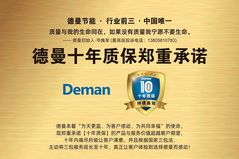 在单机节能方面,德曼表现突出。空压机作为工业的“气动脉搏”,德曼以全生命周期能效管理重新定义单机节能理念。自2017年提出“十年质保”以来,德曼从设计、采购、生产、销售到服务的每一个环节,都严格贯彻10年稳定运行的标准,全员、全线、广泛覆盖投入,让产品与服务的价值远超客户期望