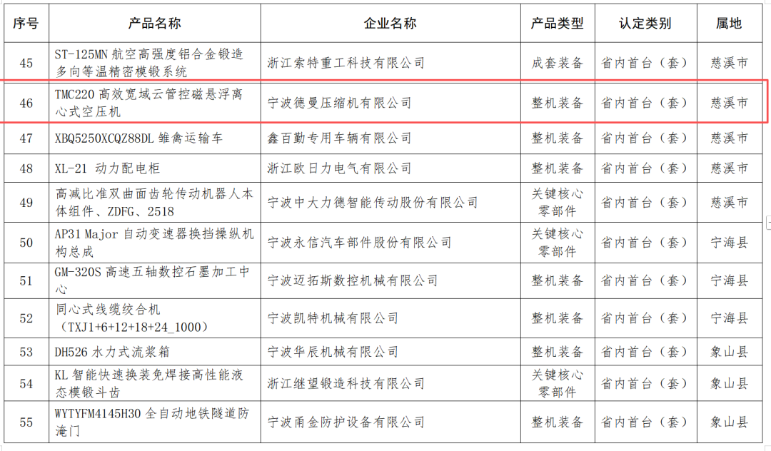 近日,宁波市经济和信息化局正式公示2025年度浙江省首台(套)装备认定名单。凭借在磁悬浮技术领域的突破性创新与硬核产品实力,德曼自主研发的TMC220高效宽域云管控磁悬浮离心式离心机成功入选,斩获市级首台(套)装备殊荣!