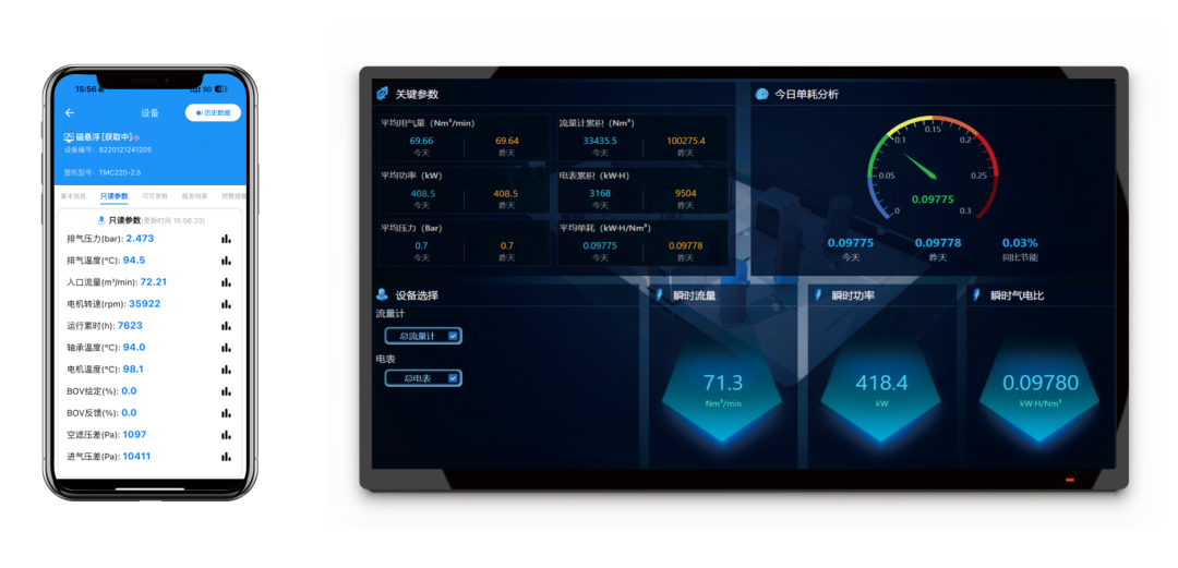 3、智能管控,省心高效:搭载AI云端物联管控系统,可实现自动化开关机、大数据调配产用气、远程实时监控与预测性维护,压力调节精确至0.01bar,彻底摆脱人工依赖,将非计划停机时间减少50%以上。